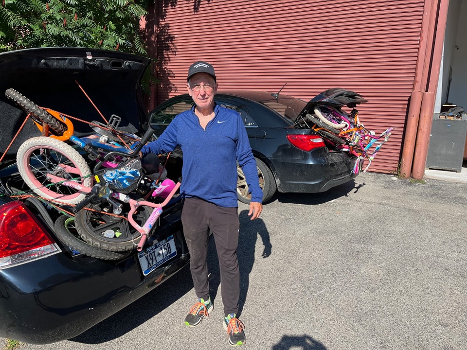 Hornell’s Larry Pelkey recieves over two dozen bikes from Rochester Community Bikes