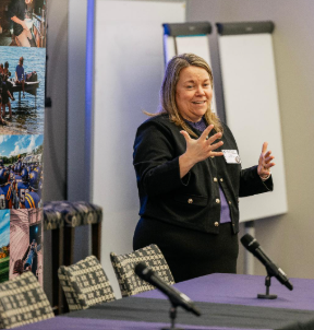 Wellsville native and Alfred University alumna Danielle Johnson-Kutch ’03, co-founder of Alfred University’s DC Purple City alumni group, addresses students