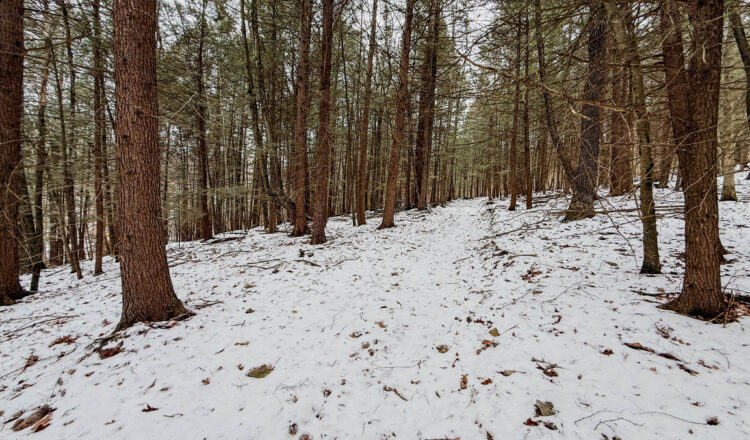 With road frontage on West Road, providing electric and internet capabilities, this property provides convenient access while still offering privacy. The land features a mix of red pine and open hardwoods, primarily maple and oaks, creating a beautiful natural setting. A gas line easement runs through the property creating an opening down the middle for viewing and ease of accessing the upper edge of the property.