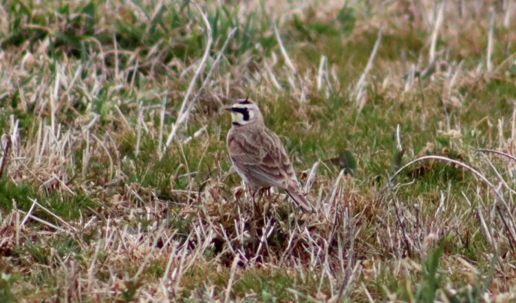 Larks can be found all year long in large, open fields. They prefer mostly barren habitats; that is, they like the ground to be plant-free or having plants shorter than 3 inches in height. So, as crops and weeds get too tall, they will vacate the area, moving on to other fields, only to return once a field is plowed. From my experiences, they’re most abundant in hay, alfalfa, and winter wheat fields.