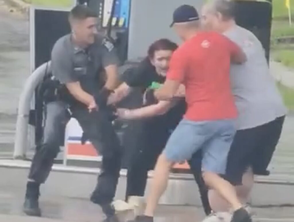 According to dispatchers who were alerting emergency personnel, one trooper was shot and a second had facial injuries. The facial injury took place as the woman fought with troopers and customers of the store trying to restrain her.