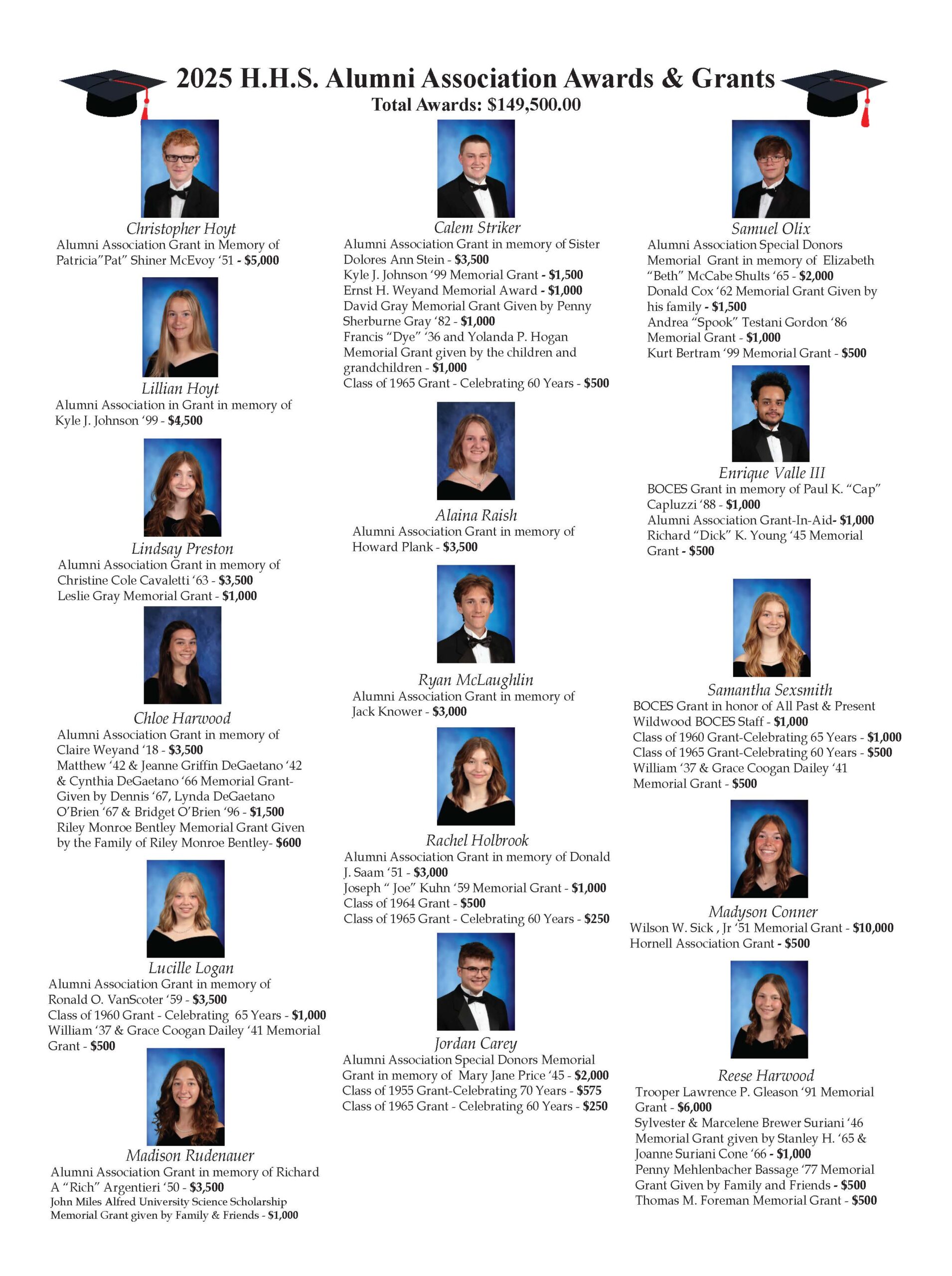 Home » Hornell High School Alumni Association announces 2025 awards and grants