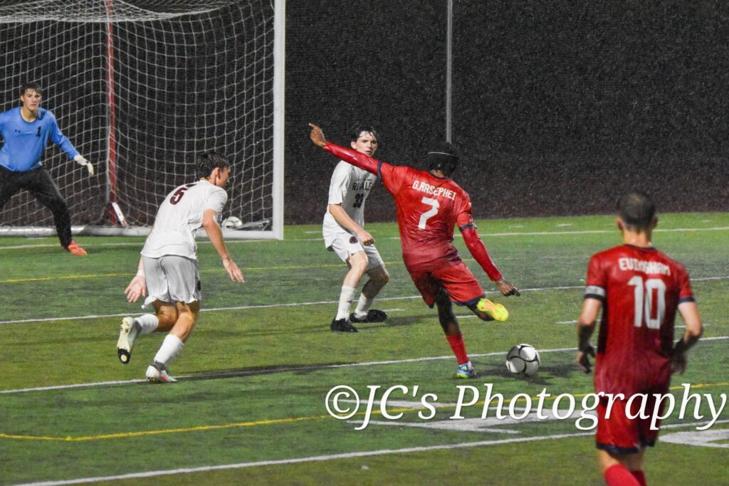 The rain picked up as both teams were strategizing during halftime. Under a heavy downpour, Evingham found senior Jayden Rasephei who scored Hornell’s third goal of the night just 6 seconds into the second half.
