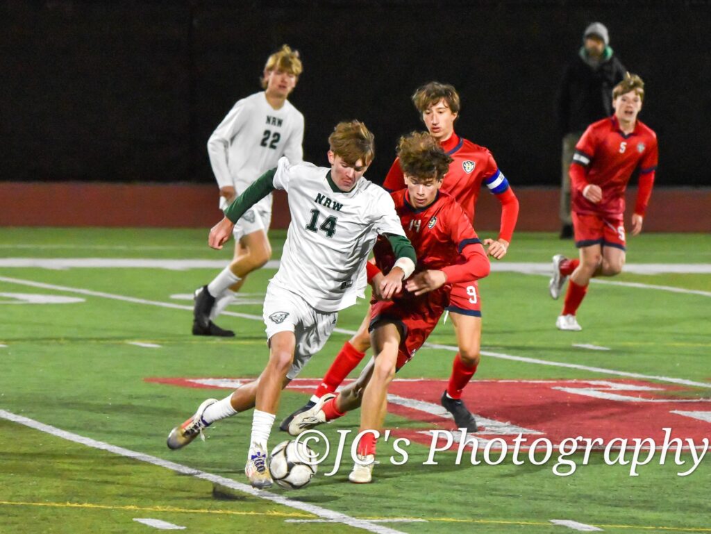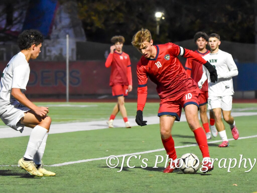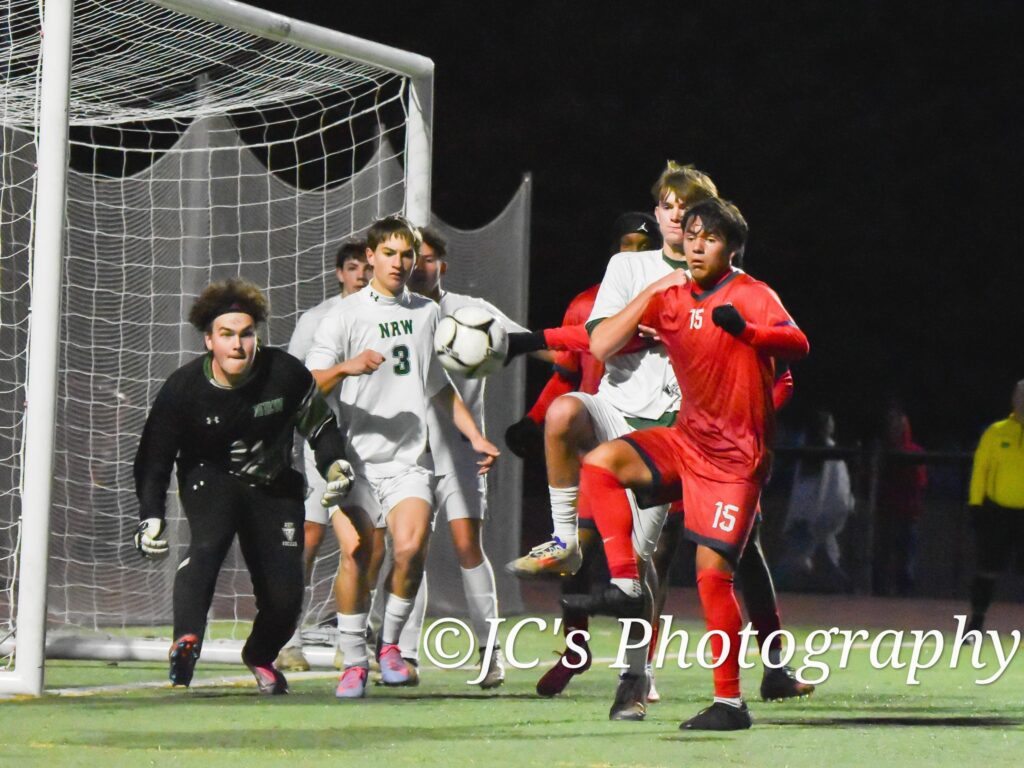 Hornell star goalie, Alfie Whiteley, tallied his 15th shutout of the season as the Hornell Red Raiders beat North Rose Wolcott 5-0 in the Class B quarterfinal match Saturday evening at Maple City Park.