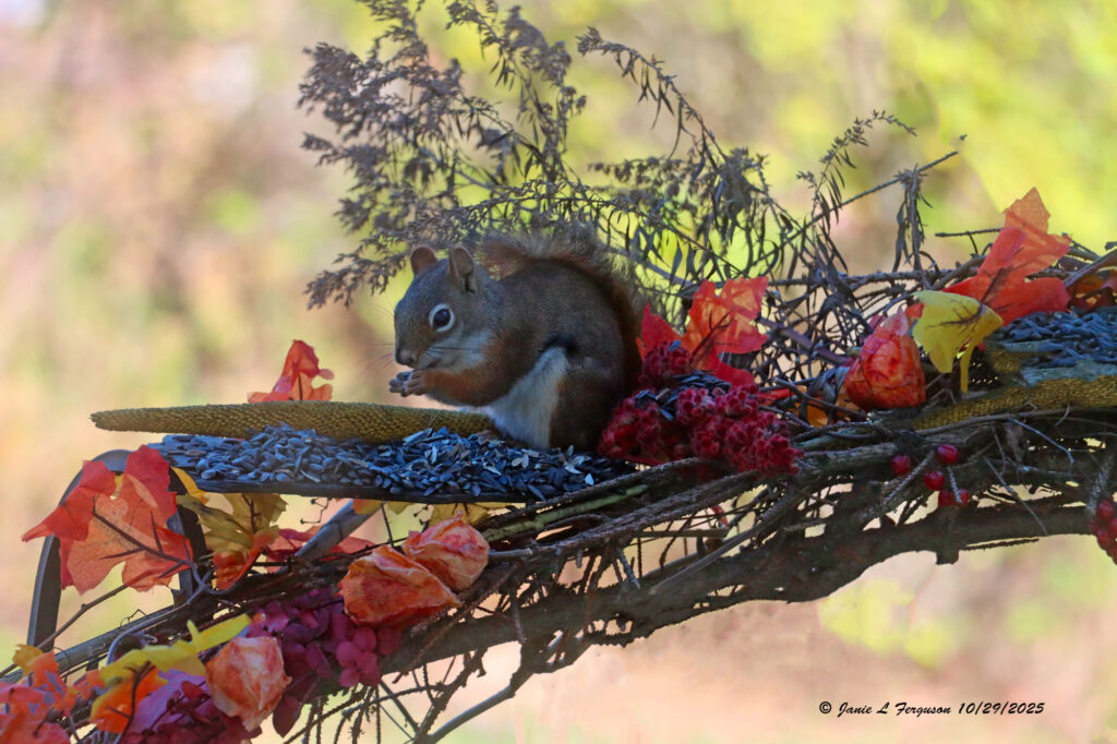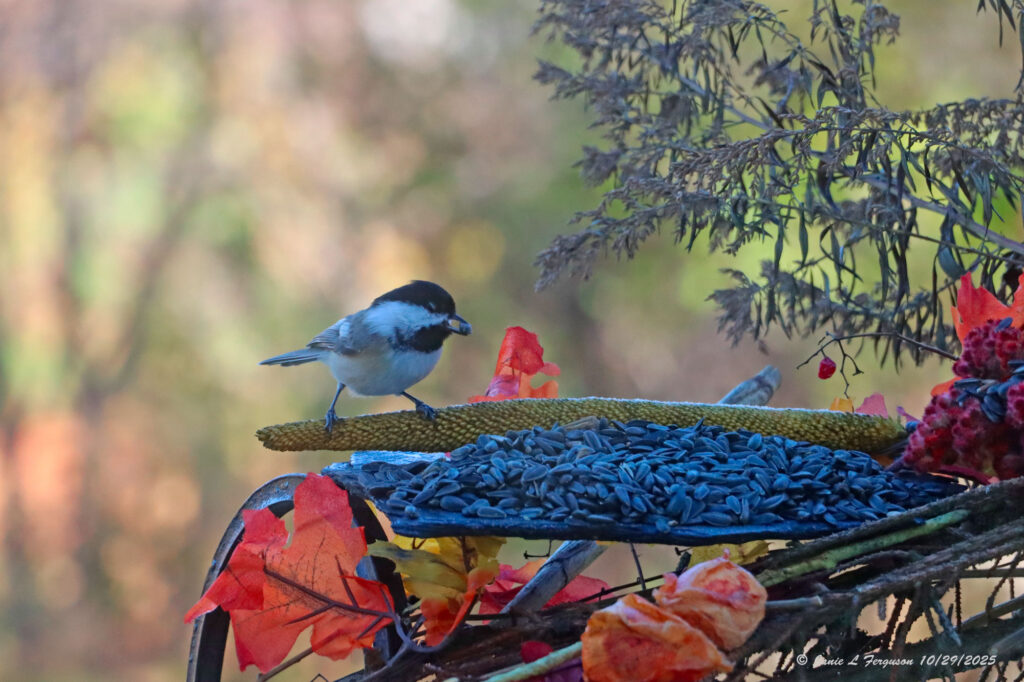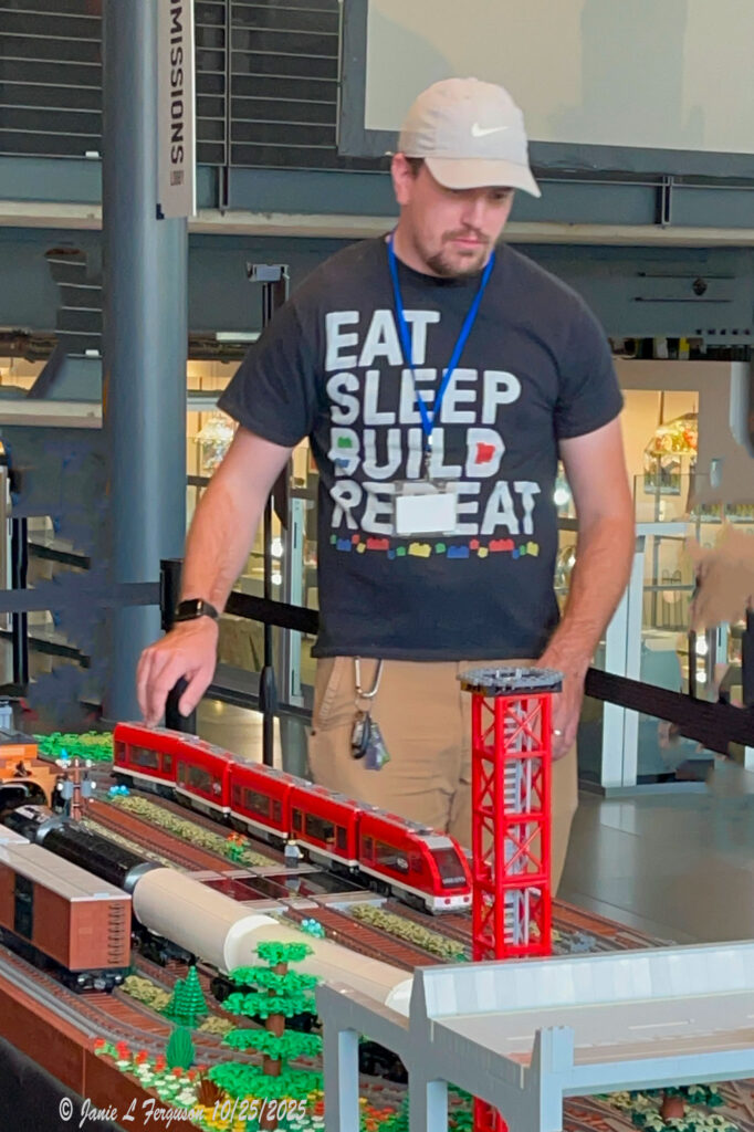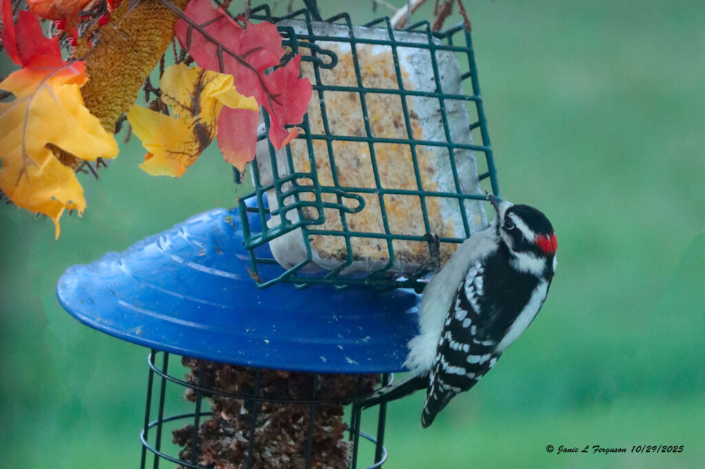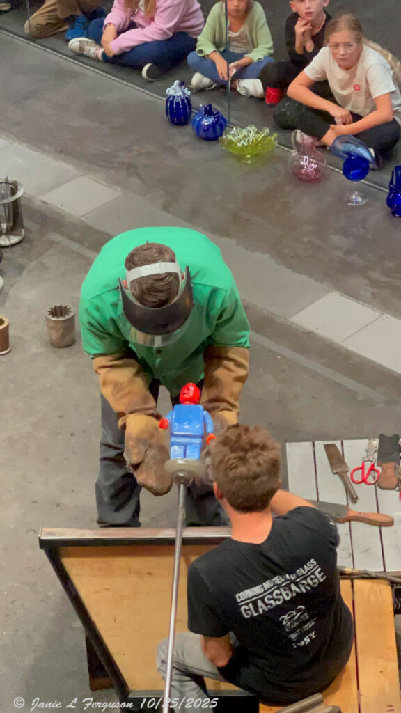 This week I begin with our youngest grandchildren in their costumes as hunters, and their deer. (dear sister) Next, a black-capped chickadee feasting on sunflower seeds. Then a photo of Chris Rochelle finishing up his glass Lego man, just getting ready to be put in the oven, at the Corning Museum of Glass, this past Saturday at the Empire Brick Con. Then a feisty squirrel, and a Lego train, and its creator as our grandchildren, and family looked on with delight. Ending with a downy woodpecker enjoying suet.