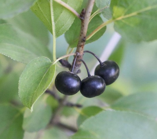 The fruits of common buckthorn are not kind to man or mammals as they possess a chemical called emodin which increases water content in the colon and leads to the runs.
