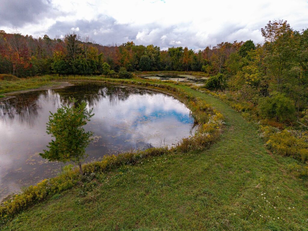 This mostly-timbered parcel features a diverse mix of hardwoods and sporadic pine including red oak, white oak, maple, ash, apple trees and other native timber species. Brush hogged trails for ATV and Side by Sides have been developed to traverse the property with ease. The terrain is easily accessed via these trails to the back of the property where you’ll discover 5, yes that’s right, 5 amazing ponds already established and well maintained. They have been cleared out recently and are thriving; drawing the attention of waterfowl, whitetail deer, turkeys and other wildlife.