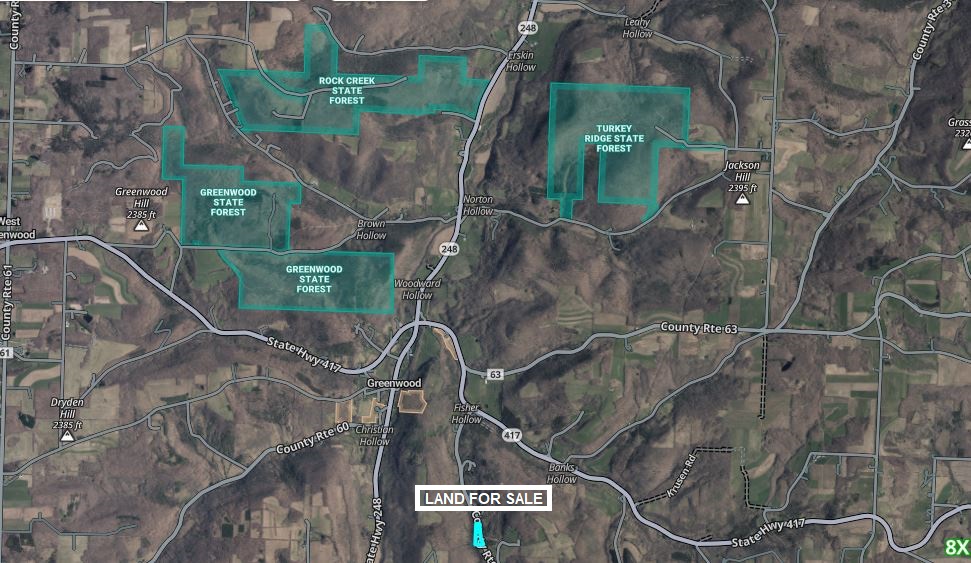 Enjoy the convenience of year-round road access with electric available at the road, while still being just minutes from thousands of acres of public land. Turkey Ridge, Rock Creek, and Greenwood State Forests are all within a 5-mile drive, together offering more than 2,000 acres to hunt, hike, and explore. Anglers will appreciate the nearby fishing opportunities on Bennetts Creek and the Canisteo River.