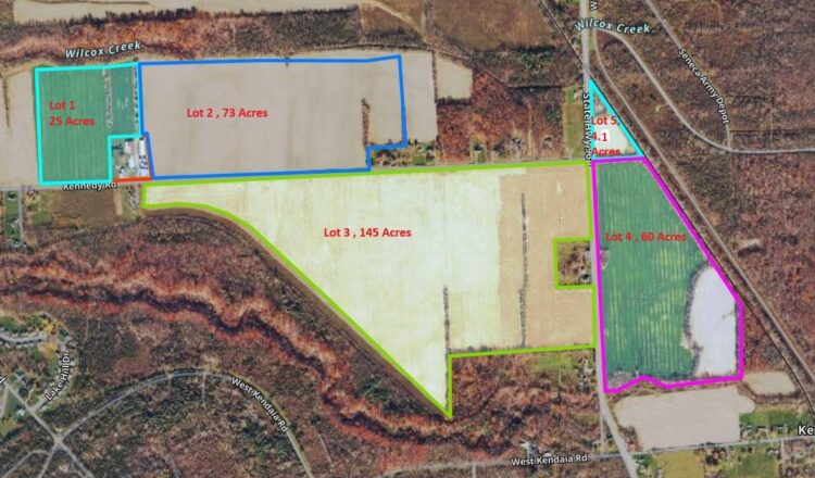 This property offers distant lake views and gently sloping topography towards the lake with a less than 3% grade and over 700 feet of road frontage. Just down the road is East Lake Road and access to the northern end of the East Lake Trail System in Sampson State Park. The Village of Ovid is nearby with shops and eateries. The property faces the west offering incredible sunsets. There are wineries located to the north and south of the property along the lake. Currently, the farm fields are leased and have been used for growing rotational crops. The land has some of the most sought after soils in the region comprised mostly of Silt loam soils. Contact listing agent for soil maps. This is a prime location for development or potential for a farm venture such as a winery. Additional land that is adjoining, and across Kennedy Road, is also for sale for a total of 309 acres. All maps and aerial photos are for reference only and show approximate boundaries. The parcels are subject to final survey and subdivision approval. Don’t miss out on this fantastic opportunity to own this Finger Lakes premier farm property in a very desirable location.