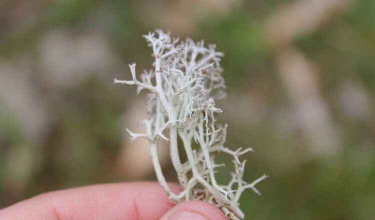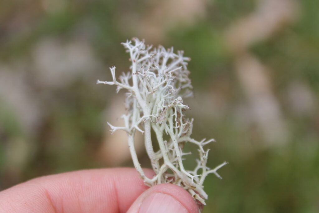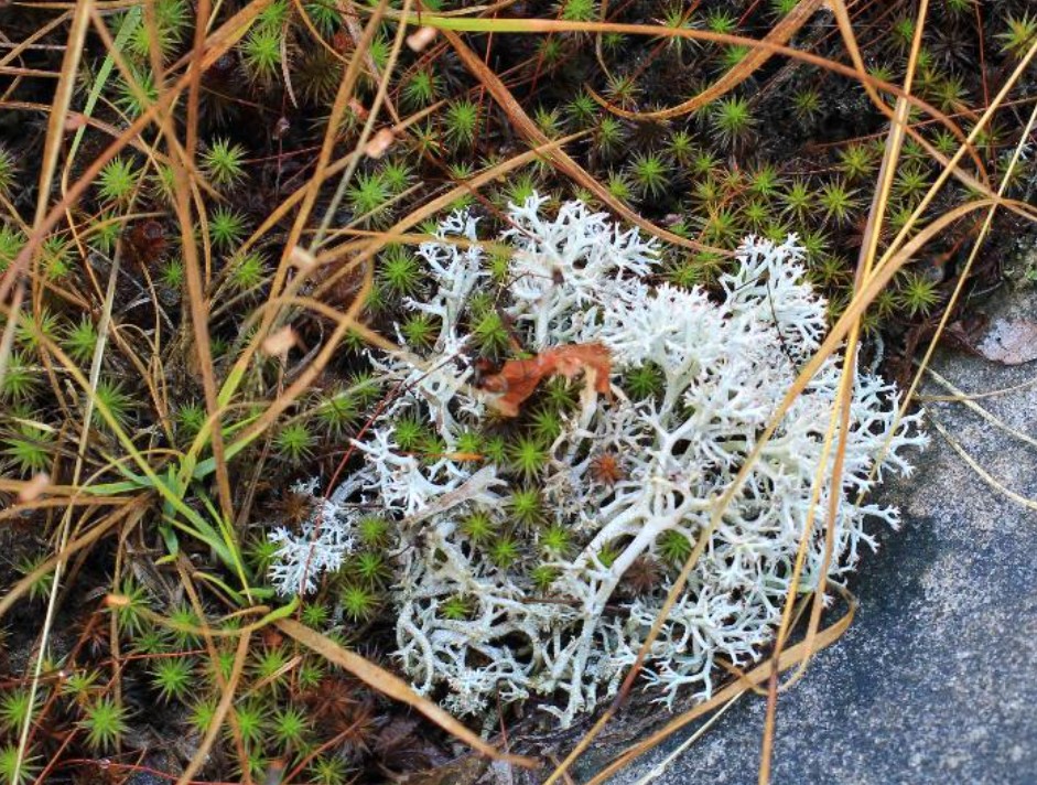 Reindeer moss can be found in disturbed sites in those mountains, like parking areas, hunting camps, or logged-out forests. It can be identified by its small height (no more than 3 inches), light-grey, almost white, branched appearance, very dry and crunchy feel, and the small colonies that it grows in.