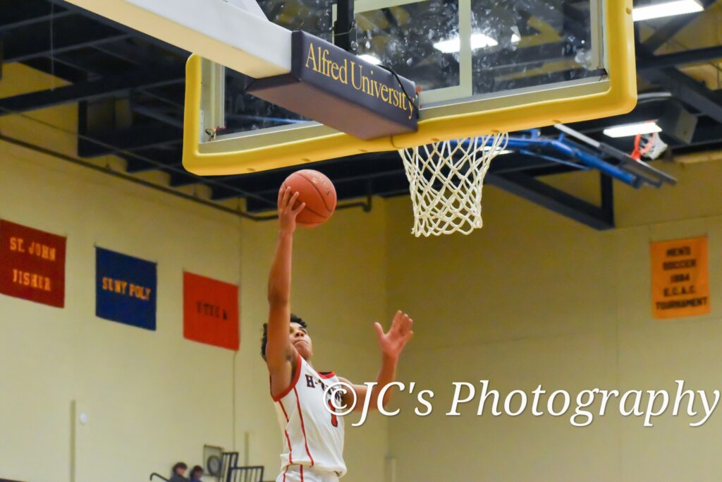 Hornell fell behind early in the game and struggled on both ends of the court. After two quick time-outs from head coach, Kirk Scholes, the Red Raiders began to find their rhythm. Down 21-14 at the end of the first quarter, Hornell outscored the Golden Knights 22-5 in the second quarter to put them up 36-26 going into halftime. The Red Raiders were able to keep pace throughout the second half for the victory.