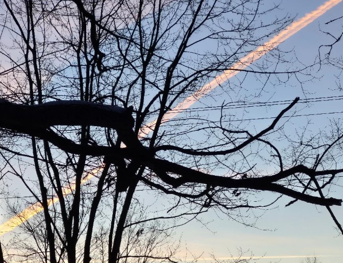 Last week, at sunrise there was an ominous orange streak, from horizon to horizon, that bore all the characteristics of a chemtrail. Such a brazen application