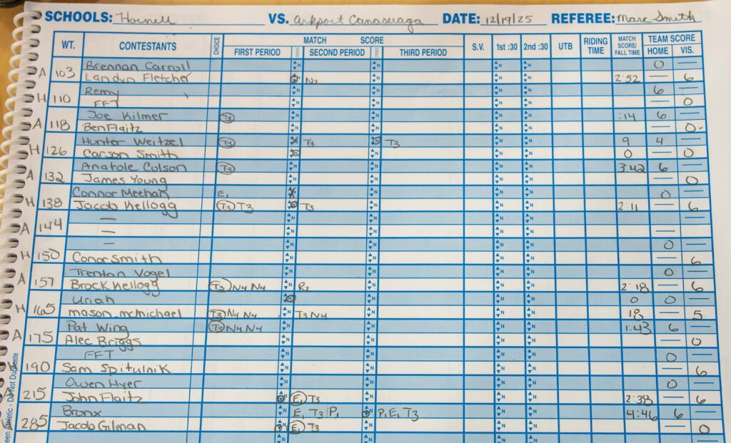 Hornell and Arkport-Canaseraga faced off in a competitive high school wrestling dual featuring bouts across multiple weight classes, with a mix of pins, decisions, forfeits, and technical outcomes shaping the final result.