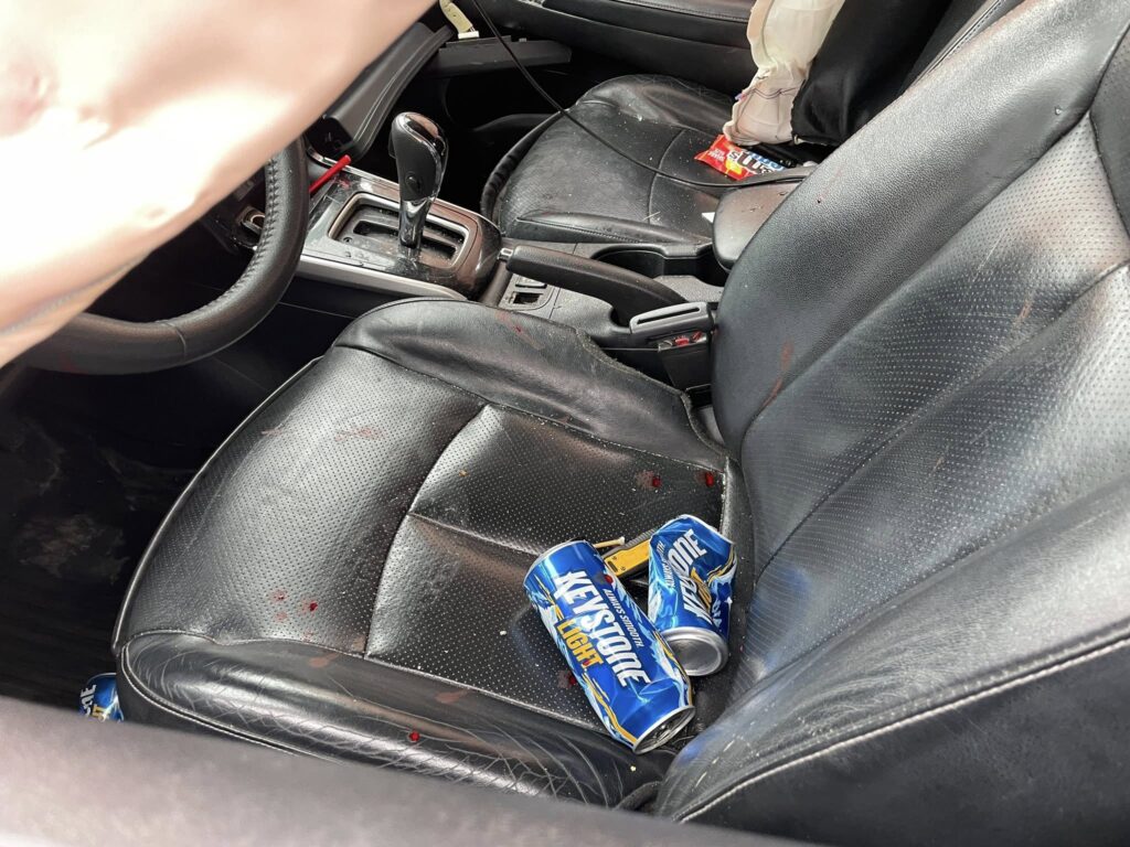 From the LeRoy Police Department – NY, pictured is inside the drivers car post crash