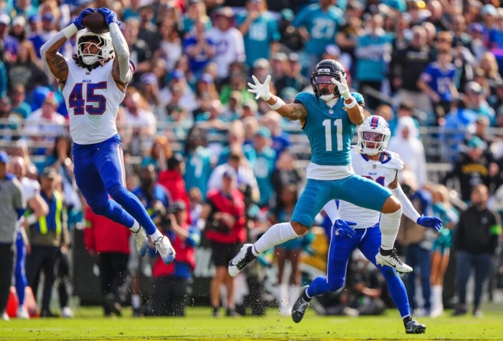 But, Buffalo got a break as cornerback Tre-Davious White tipped Trevor Lawrence’s pass and it floated to safety Cole Bishop who made the catch to effectively end the game.