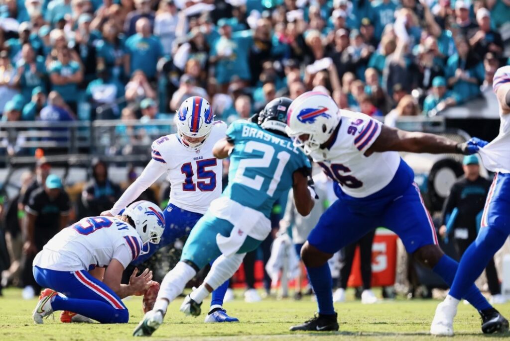 With the Jags up 24-20, Buffalo drove to the Jags 1-yard line with no time outs. Then Jacksonville let Bills QB Josh Allen score for a 27-24 lead and 1:05 remaining rather than Buffalo running the clock down to nothing. Instead, the Jaguars needed only to score the tying field goal with the NFL’s most proficient long-distance kicker to send the game to overtime.