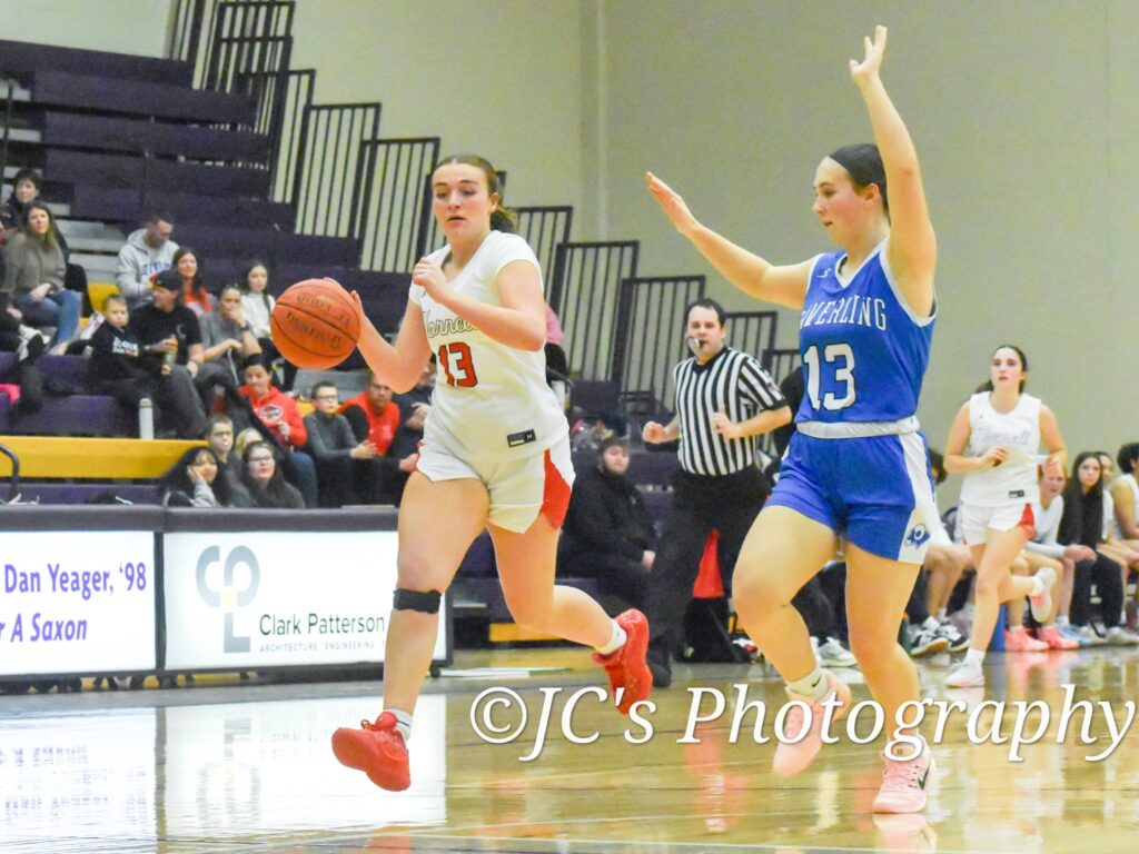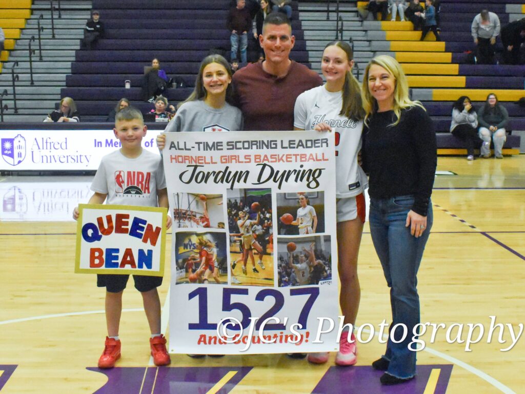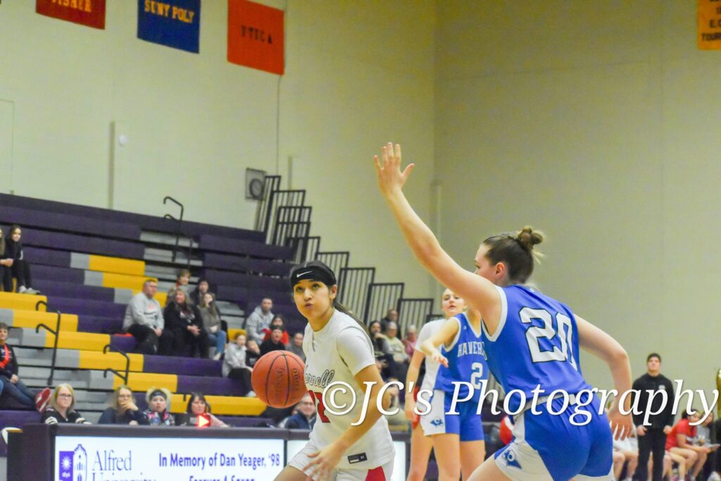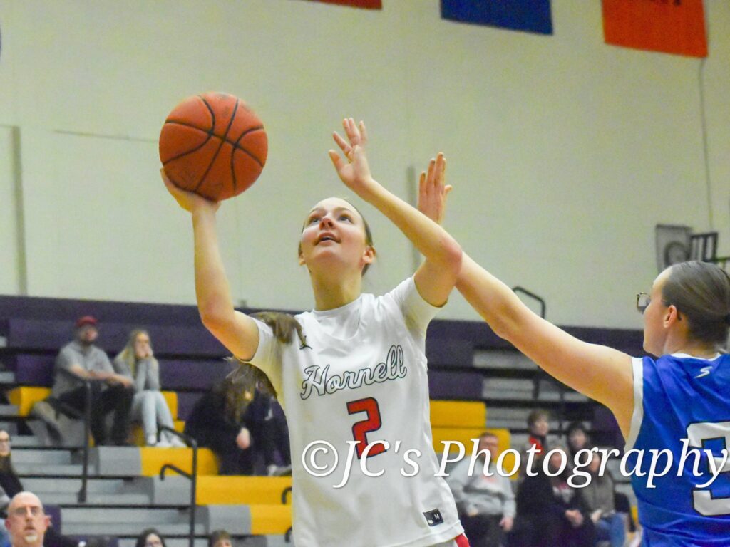 Hornell Girls Basketball got the win tonight over the Haverling Rams in a game that solidified two names in Hornell High School sports history.
