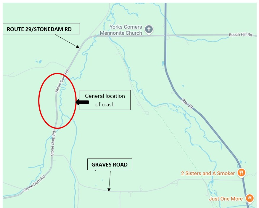 The accident occurred south of Wellsville on County Route 29, Stone Dam Road, between the intersection of Graves Road and the Hunt Road. A general location is indicated below on the map: