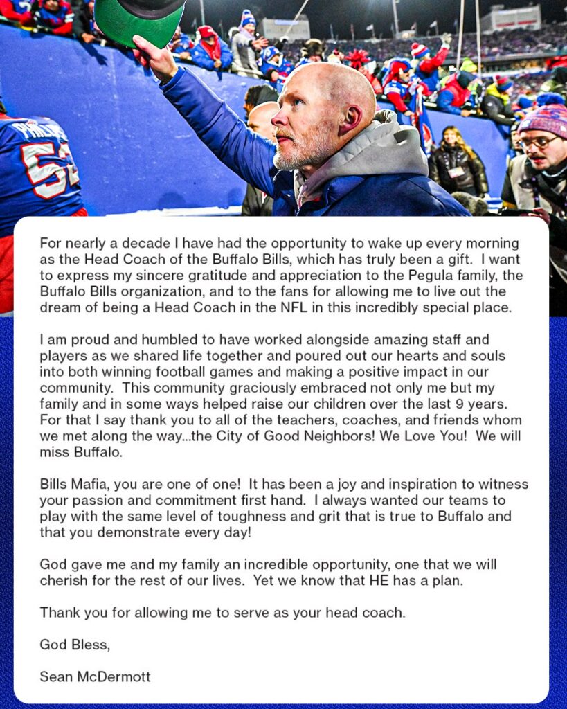 During the last week, you’ve been in shock over the firing of Buffalo Bills coach Sean McDermott. Over the last week you’ve made comments on Facebook or social media, you’ve shared posts, you’ve read stories and watched reels. You’ve talked about the mistake while you’re at work, the supermarket and at your dinner table.