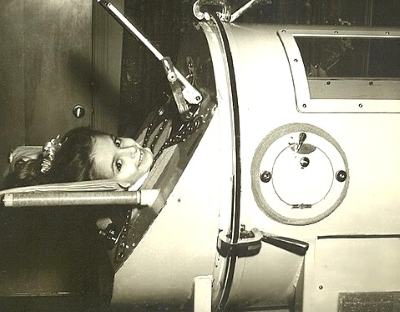 I can recall seeing photos in Life magazine of hospital rooms filled with dozens of children encapsulated in those metal tubes with just their heads hanging out of the end.