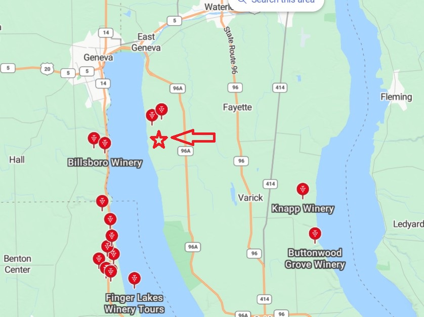 Nearby attractions include: Geneva 15 minutes north, Seneca Falls 20 minutes, Sampson State Park 10 minutes south, Watkins Glen 45 minutes south, and Ithaca 45 minutes.