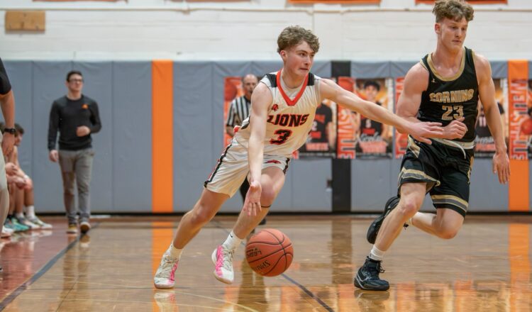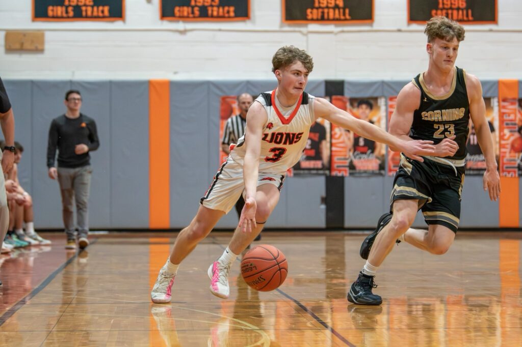 And don’t think for a second that Corning is a one-man team. Senior Kyler Stevenson who has committed to play basketball at SUNY Plattsburgh is an all-Star caliber player, he finished with 18 points and four rebounds. Senior point guard Kohl Hogue finished with 17 Points, 11 Assists, five rebounds and two steals. Junior Carter Proudfoot finished with 10 points, 3 assists, 3 rebounds and 4 steals. With defenses focusing on stopping Nolyn Proudfoot, Carter Proudfoot, Stevenson and Hogue know where to go and Nolyn Proudfoot finds the open man.