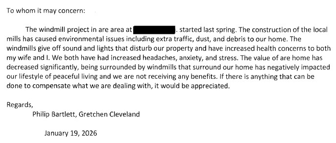 “I’ve worked in construction for over 30 years where there seems to be rules and regulations for everything. But when it comes to windmills, the same rules and regulations seem to be thrown out the window.” Flansburg shares.