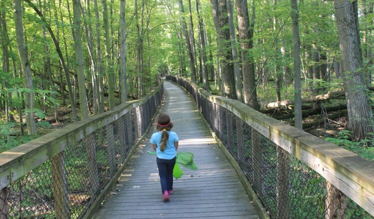 As you start your hike at the parking lot and head to your left, you will walk on a third of a mile of boardwalk that is raised 3 to 5 feet above the often-swampy forest floor. It is an engineering marvel, an outcome of an excellent partnership of government workers and volunteers. You won’t find any rickety planks, the walkway is flat and it is high-quality — protected on the sides by chain-link fencing and wooden rails. The forest underneath the boardwalk typically holds some water into early summer, providing vernal pools that are very important to baby frogs, toads, and salamanders.
