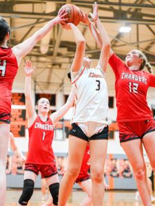 “Gracen and Kara have been a wonderful addition to our district since the summer. They have jumped into our sports world with both feet and haven’t looked back. Gracen is such a strong all-around player. She rebounds well, passes the ball all over the court setting her teammates up for fast break layups or open threes, and she is also a good scorer. She can stretch the defense with her 3-point shooting as well as take an opponent to the rim with her ball handling skills. Kara has a motor that does not stop. Her shot is the quickest I have ever seen at the high school level and if she gets hot from the outside, she can fill up the stat sheet very quickly. One thing people might not notice is how quick her hands are as well. She gets many deflections and steals that generate our break and open up our scoring. I am so excited to see how these two progress over the years. I anticipate outstanding careers for both of them at C-G. They have great teammates around them, who are also some of their best friends. This group of girls are very competitive and push each other each day,” Button said.
