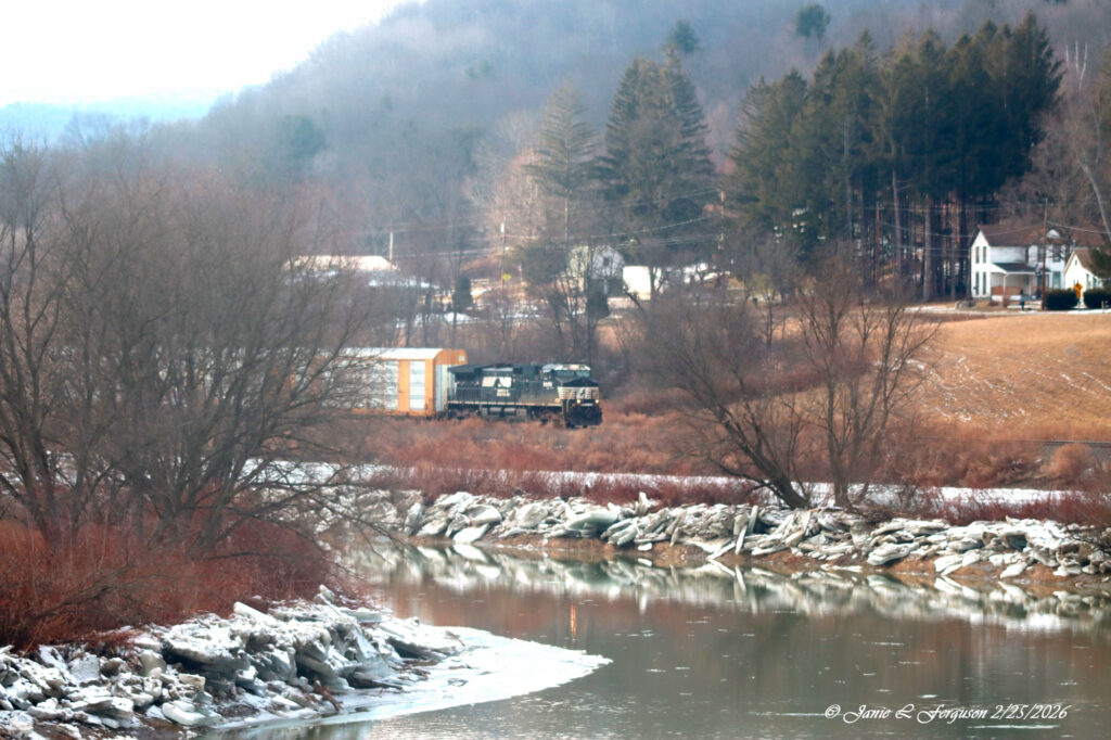 I begin this week with a vibrant male cardinal, who is known for his aggressive behaviour to protect his territory, and a steady NS train greeting us as it passes through our valley, along with signs that we had an ice jam on the banks of the Canisteo River, as well.