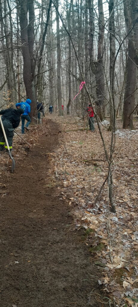 Constructing a fire line at training in English Hill State Forest