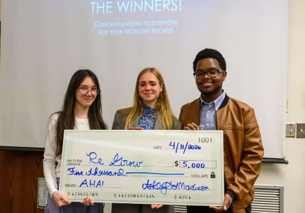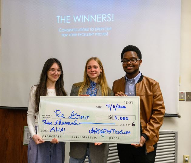ReGrow, developed by Alfred University students Amina Shamshibayeva, Vladyslava Makarenko, and Mike Maeda, took home top honors at the sixth annual AHA! Allegany County Startup Collegiate Competition, hosted at Houghton University on Saturday April 11th.