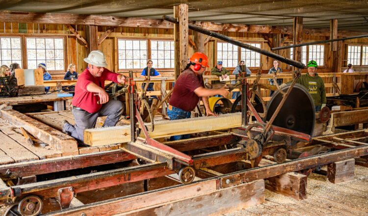 On Saturday (April 18) only, visitors can watch the museum’s re-created 19th century steam-powered circular sawmill in action as well as demonstrations of log skidding with horses.