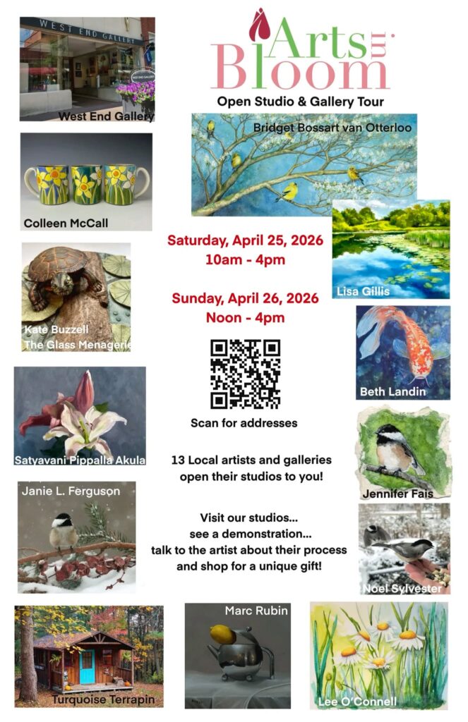 ‘Arts in Bloom’ Open Studio & Gallery Tour is coming locally to Beulah Land at 4363 County Route 24, Cameron Mills, NY, along with the Corning & Elmira area, too.
