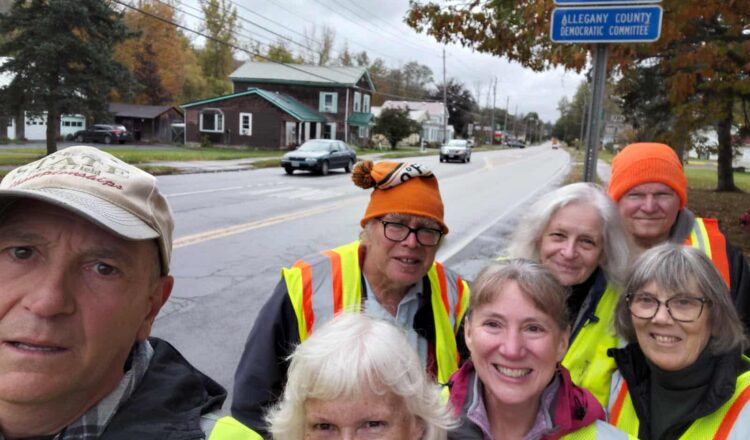 ALMOND, NY — Since 2021, the Allegany County Democratic Committee has cleaned up a section of State Rt. 21 in Almond, NY as part of the NYS Department of Transportation’s “Adopt-a-Highway” program.  This project is just one of the many ways local Democrats serve our community.